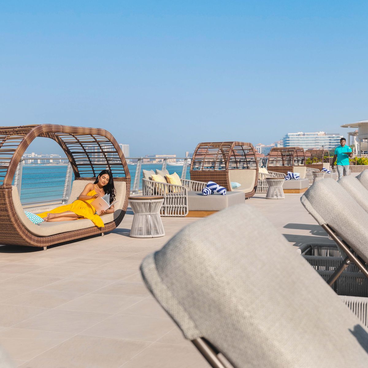An der Küste der renommierten Palm Jumeirah in Dubai lädt das Taj Exotica Resort & Spa The Palm Dubai als luxuriöse Inseloase ein, die ihren Gästen ein exquisites exotisches Erlebnis verspricht. Das Resort bietet Zugang zu sieben Restaurants und Bars, die eine breite Palette kulinarischer Genüsse bieten. Ergänzt wird das Angebot durch authentische Ayurveda-Behandlungen, erholsame Wellness-Anwendungen und ein abwechslungsreiches Freizeitangebot, einschließlich eines Privatstrandes.
