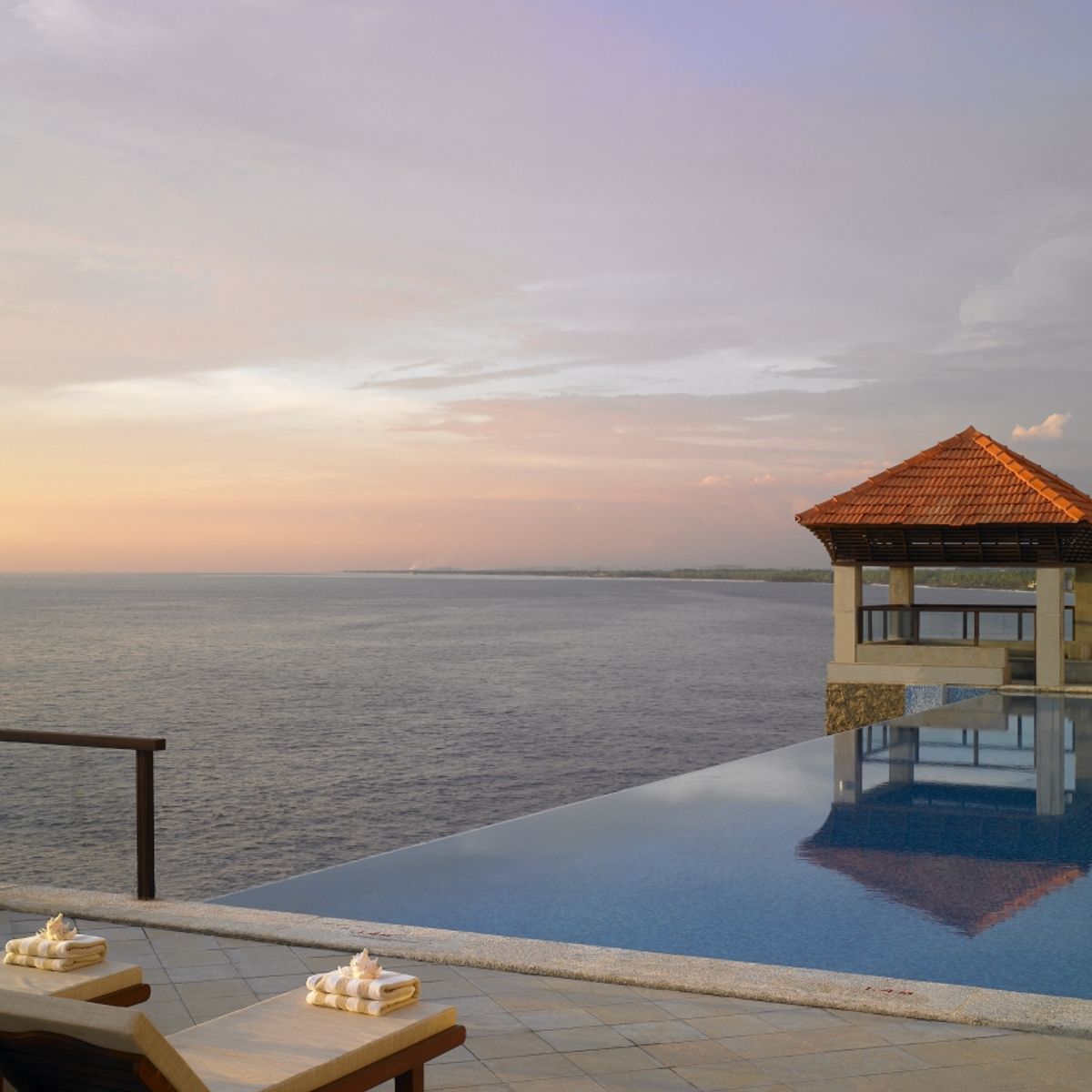 Herrlich auf einer Klippe liegt das historische 5-Sterne Luxushotel der Raviz Gruppe, The Leela Kovalam, a Raviz Hotel. Es steht auf den felsigen Vorgebirgen der Küstenstadt Kovalam, im südlichen Bundesstaat Kerala und besticht durch weiße Wände, rote Ziegeldächer und weitläufige Sonnendecks mit traumhaftem Panoramablick über den Kovalam Strand und das Meer. Zum 67 Hektar großen Resort gehört auch das historische Halcyon Castle, jetzt Kovalam Palace, einst die Sommerresidenz der königlichen Familie von Travancore und nun das offizielle Gästehaus der Regierung von Kerala für Staatsbesuche.