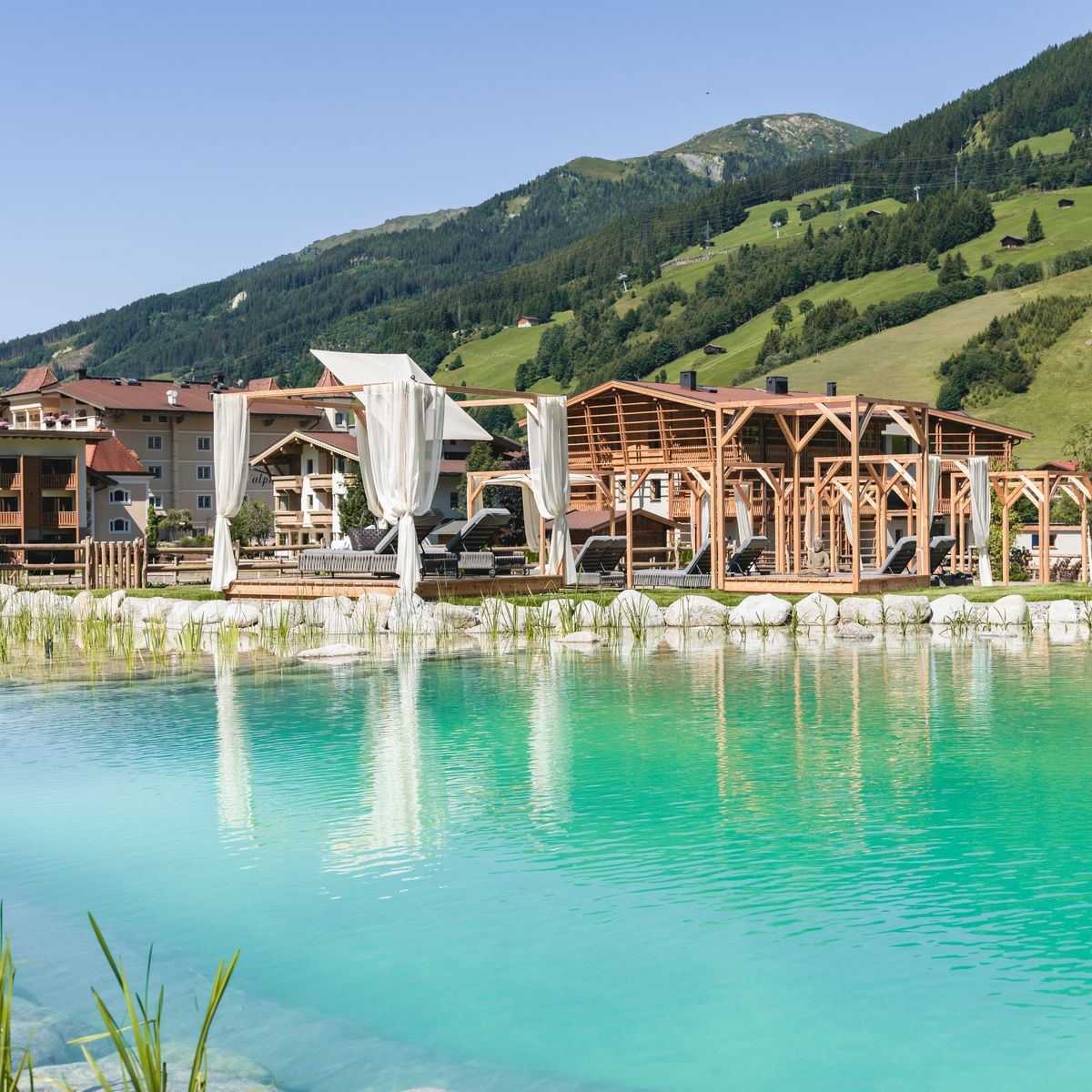 Im kürzlich modernisierten Traumloft Spa des Wellnesshotels Alpina in Gerlos, welches sich über etwa 1.000 Quadratmeter erstreckt, finden Gäste einen Poolbereich mit Gegenstromanlage und eine 35 Grad warme Whirlgrotte vor. Zudem lädt ein natürlicher, chlorfreier Schwimmteich zur Erholung ein. Die umfangreiche Saunalandschaft des Hotels umfasst ein Aromadampfbad, eine Infrarot- und Lehmsauna, eine Finnische Sauna sowie ein erfrischendes Kaltbecken, die alle zur Entspannung beitragen. In der atmosphärischen Yoga Shala wird ein breites Yoga-Programm angeboten. Ayurveda-Behandlungen, geleitet von einem erfahrenen Spezialisten aus Kerala, fördern ein ganzheitlich gesundes Lebensgefühl. Der 60 Quadratmeter große Fitnessraum des Hotels ermöglicht ein optimales Trainingserlebnis.