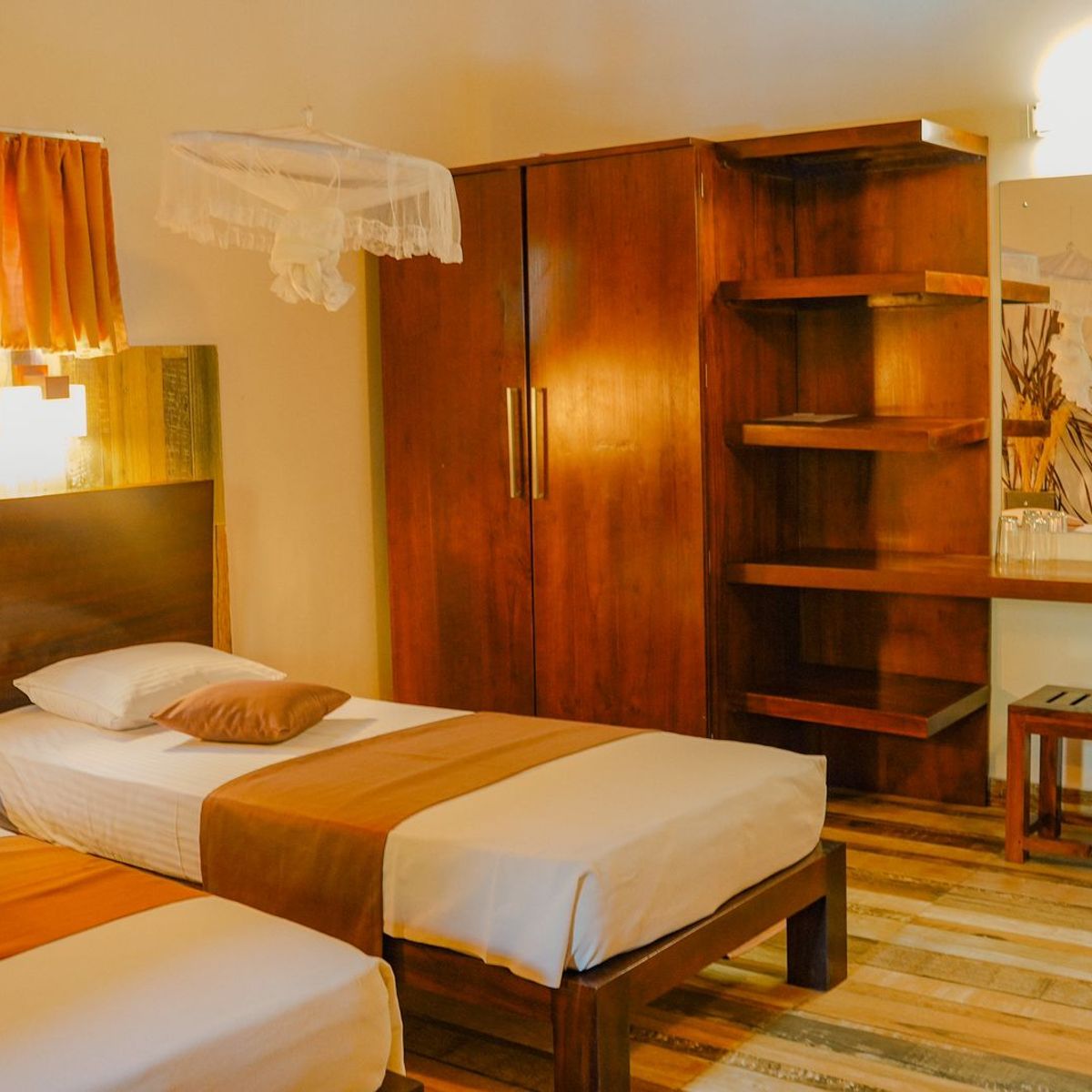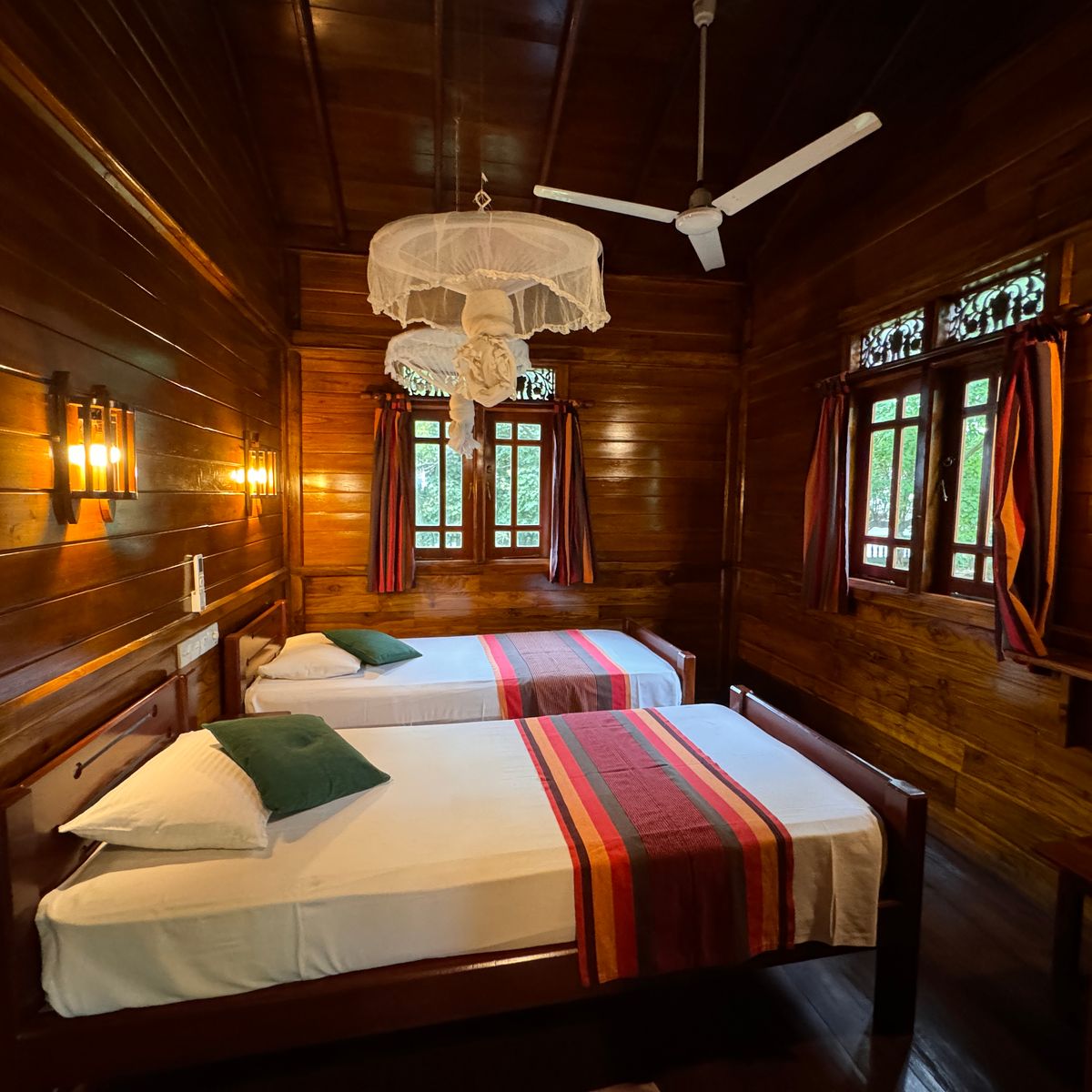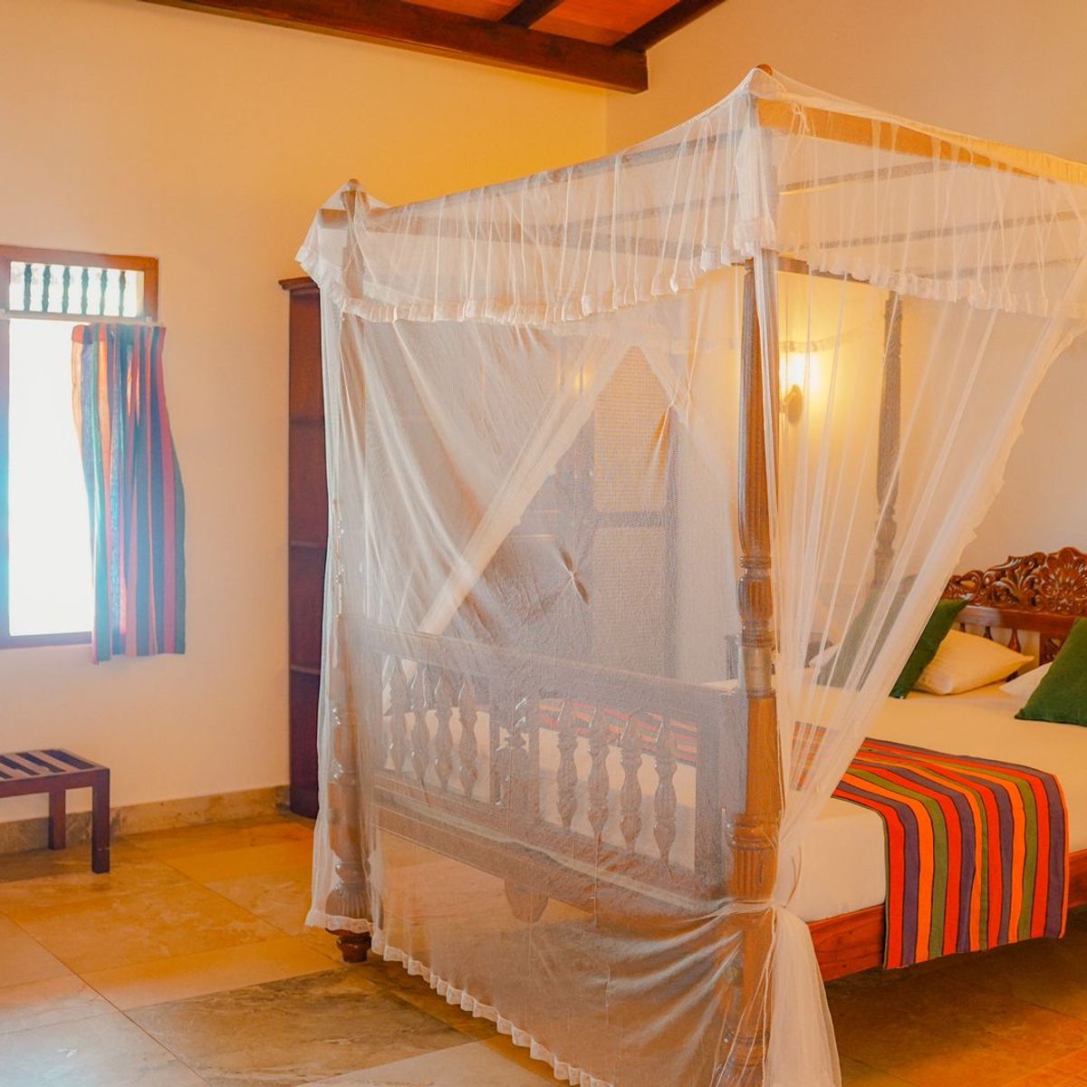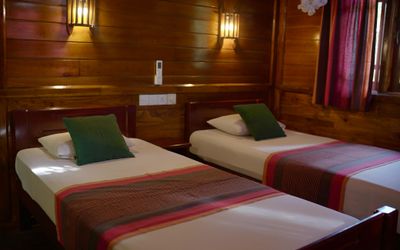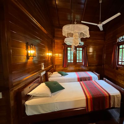 In einer üppigen tropischen Gartenlandschaft verteilen sich 36 geräumige Doppelzimmer (ca. 25-38 qm), die auch zur Einzelnutzung verfügbar sind, auf mehrere ansprechende, zweigeschossige Gebäude. Gäste können zwischen liebevoll eingerichteten Eco-Holzcottages wählen, die speziell für Ayurveda-Gäste errichtet wurden, rund um den Pool und nahe am Ayurveda-Center gelegen, sowie zwischen eleganten Komfort-Zimmern mit Blick auf die Natur, seitlichem oder direktem Meerblick. Beide Zimmerkategorien bieten eine schlichte und klare Einrichtung: gefliester Boden, Dusche/WC/Bidet, Moskitonetz, Deckenventilator, individuell einstellbare Klimaanlage, Safe sowie Balkon oder Terrasse bieten einen friedvollen Rückzugsort zum Entspannen und Durchatmen. Die Komfort-Zimmer sind zusätzlich mit einem Himmelbett im Kolonialstil oder zwei Einzelbetten ausgestattet. WLAN ist in allen Bereichen verfügbar. Auf Anfrage sind drei kürzlich renovierte Meerblick-Zimmer mit noch hochwertigerer Ausstattung buchbar (Aufpreis € 25 pro Zimmer/Nacht).